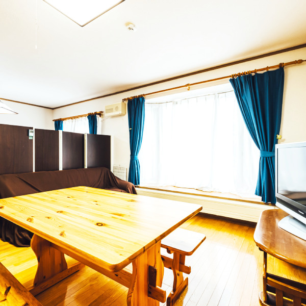 こちらは戸建てとなっており、部屋別に利用者さんのプライベートスペースとなっていますが、お風呂や茶の間、お手洗いなどは共用となっており、生活を見守る環境になります。 アットホームな空間になっています。